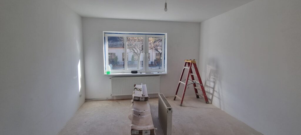 • nowe tynki, ściany przygotowane do malowania
